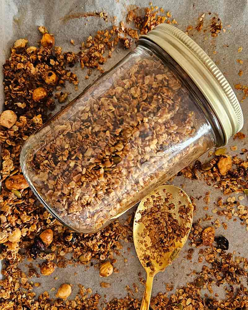 - Sacamos la granola del horno y la dejamos enfriar.