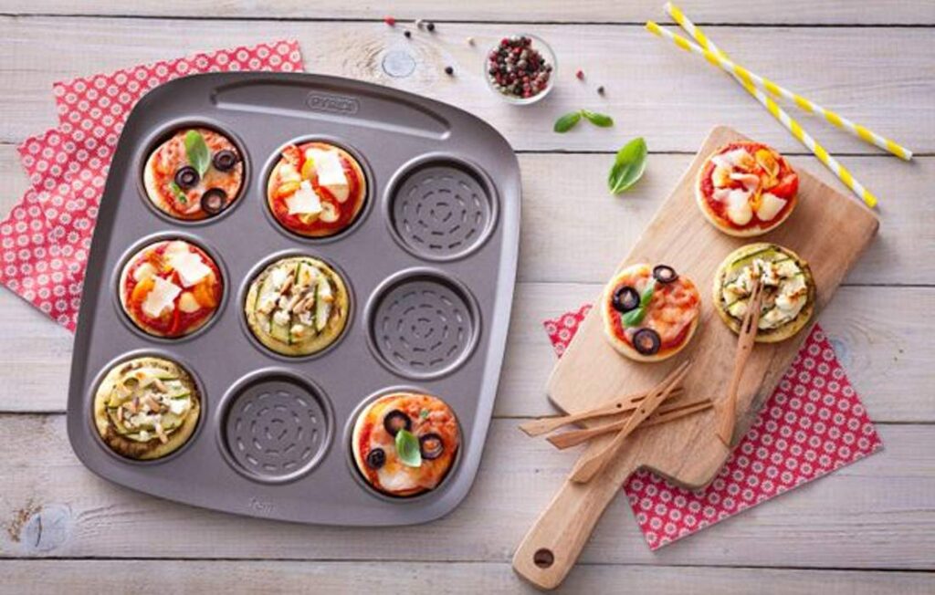 Nada más original que unas pizzas de tamaño mini para compartir y con esta bandeja especial de minipizzas de la marca Pyrex te quedarán perfectas para disfrutarlas con amigos o preparar una cena divertida con tus hijos.