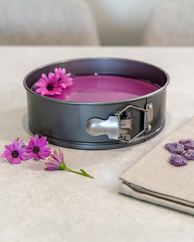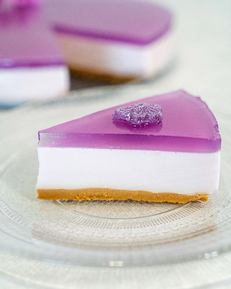 ¿Tienes un evento familiar y te apetece sorprender a tus invitados? Pues esta receta de tarta de queso y caramelos de violetas, colorista y llena de sabor no defraudará.