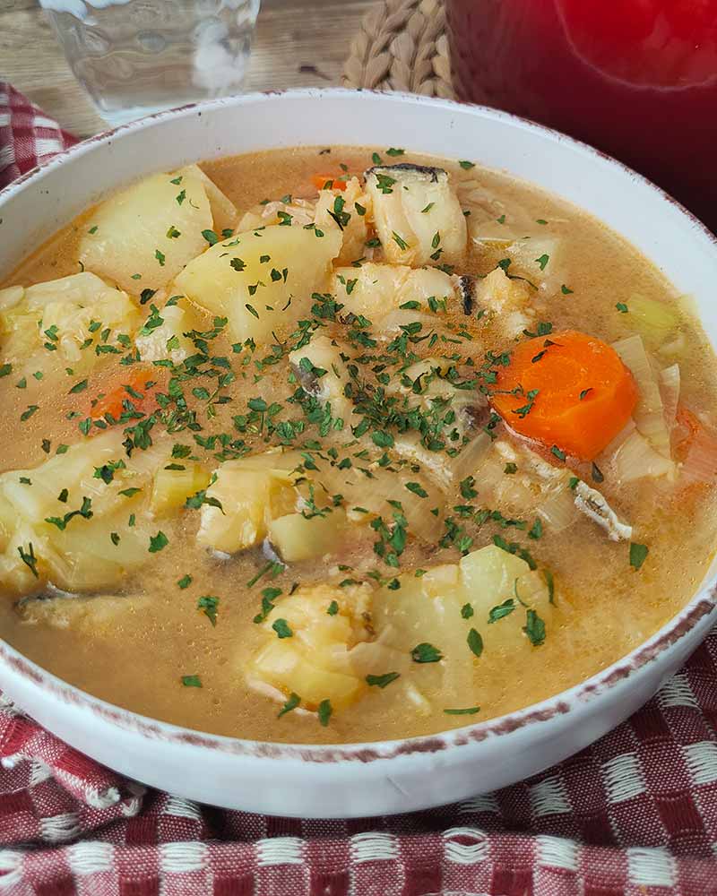 La porrusalda es básicamente una sopa o caldo muy reconfortante. Es un plato que simboliza la cocina de aprovechamiento, destacando por su sencillez y por el uso de ingredientes básicos pero llenos de sabor. En su origen era un plato humilde que contenía dos ingredientes sencillos y accesibles como el puerro y la patata. En esta receta incorporamos algún otro producto, pero también fáciles de conseguir.