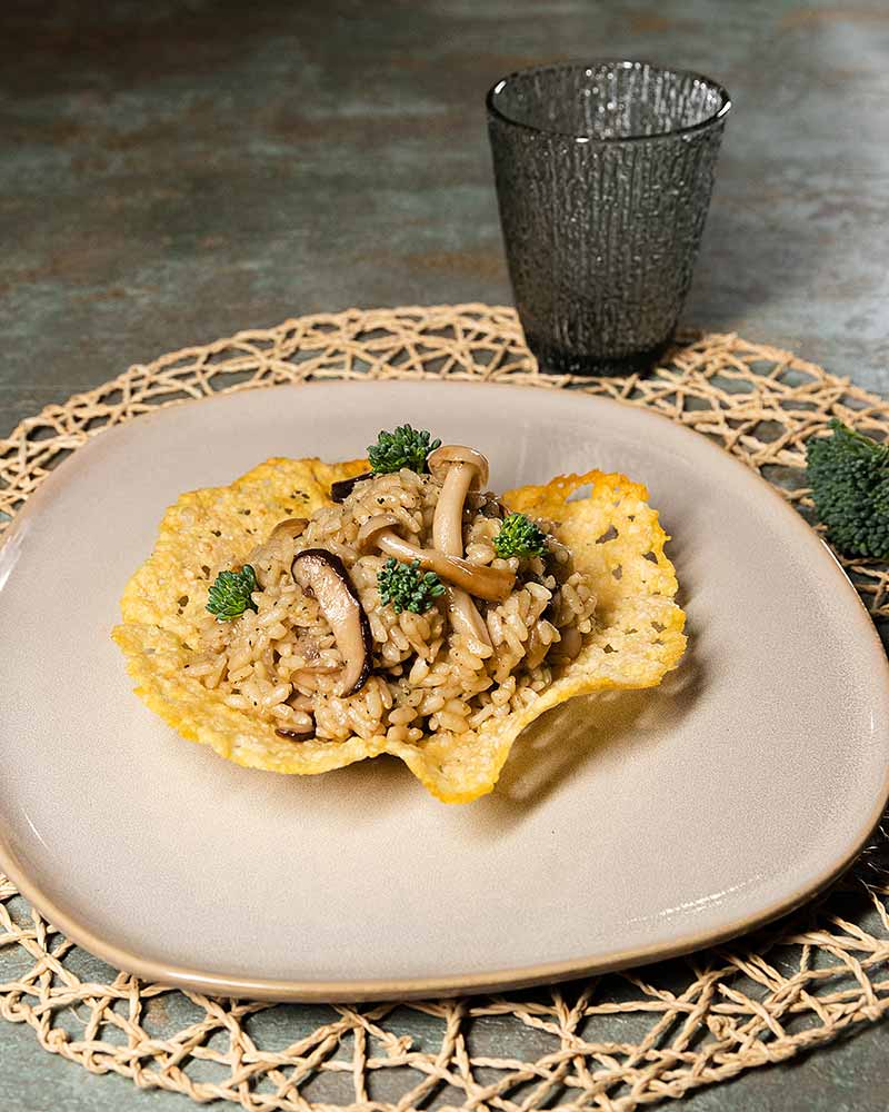 Risotto de setas en tulipa de queso parmesano